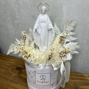 Arranjo de Flores Naturais Preservadas com escultura Nsra das Graças