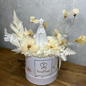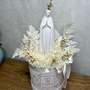 Arranjo de Flores Naturais Preservadas com escultura Nsra de Fátima