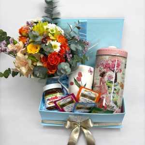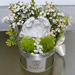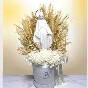 Arranjo de Flores Naturais Preservadas com escultura Nsra das Graças G