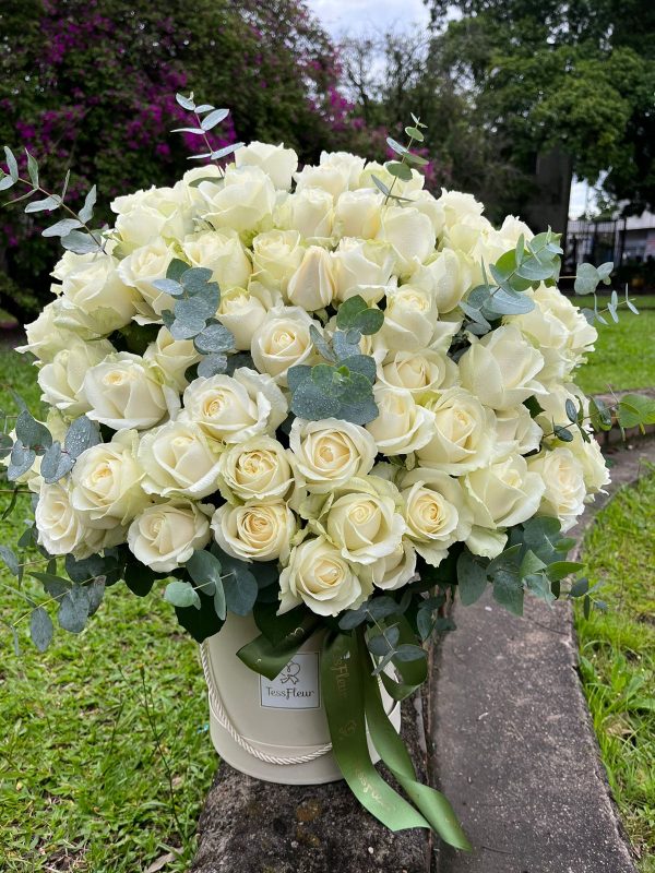 Uma bela big box de rosas brancas na BOX dourada, super elegante