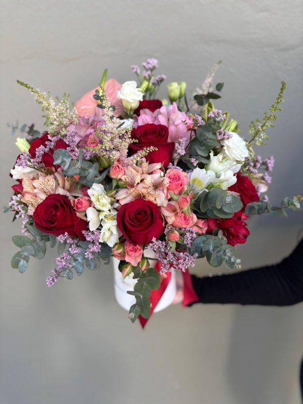 Um lindo arranjo floral em tons de rosa e marsalla.