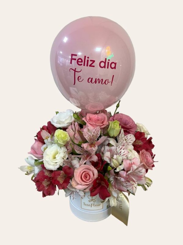 Box de Flores 25cm altura e 25 cm de largura + altura do balão em torno de 40cm de altura