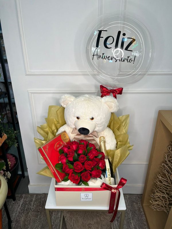 Uma big pelucia de 80cm + um buquê de 17 rosas. Uma bela sugestão para arrasar no dia dos namorados!